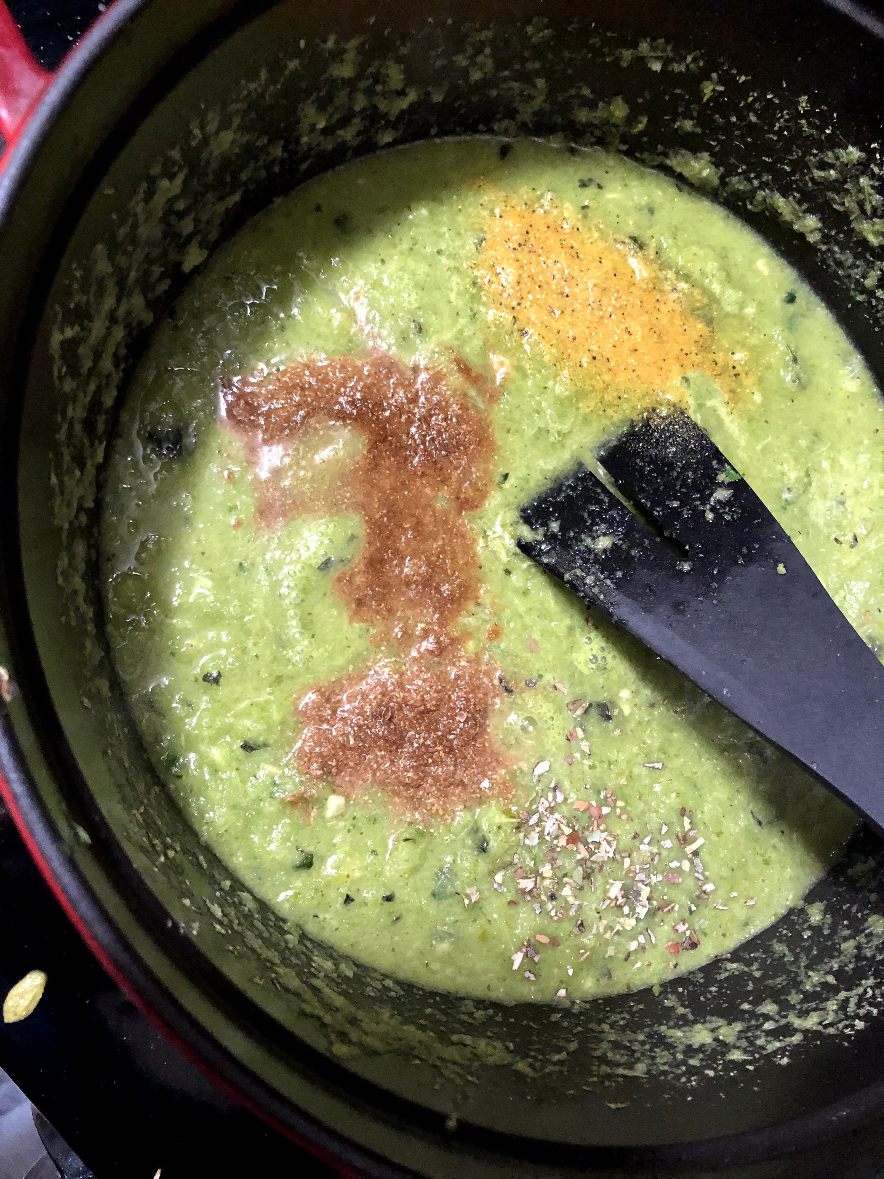Typically I start with blending broccoli and kale with a little bit of hot water and half an onion. This is the base of your chili, set aside. Heat dutch oven to moderate heat and add cooking oil. Add carrots and cook until beginning to soften. Saute garlic cloves and onion. Once fragrant add in the seasonings and stir. Sprinkle in 1 tbsp flour slowly and mix until it forms a paste and covers the base. Pour broccoli and kale base, stir. Slowly mix in water and milk, stirring constantly until desired thickness. If mixture is too watery slowly add more flour and stir until dissolved. If you used a can of beans, rinse and add them to chili. Beans should be slightly submerged in liquid. Stir and bring to a simmer for about 35-45 minutes. Lastly, add in chopped green chilis, lemon squeeze, and serve hot.