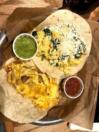We visited this cozy taco restaurant for some really good breakfast tacos! You can build your own or choose one of the menu option like the Billie Holiday (pictured);
