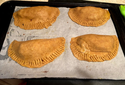 Step 6: Remove pastry crust from fridge and begin constructing your patties. Add about 2-3 tablespoons of filling on to crust. Make sure not to overfill your patties so they don't break when trying to fold.